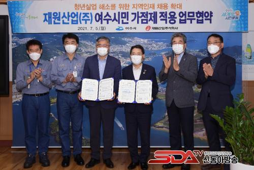 ¡ã 5ÀÏ ¿ÀÀü ¿©¼ö½Ãû ½ÃÀå½Ç¿¡¼ ±Ç¿ÀºÀ ¿©¼ö½ÃÀå°ú ½É¼º¿ø Àç¿ø»ê¾÷(ÁÖ)´ëÇ¥ÀÌ»ç´Â ¡®Àç¿ø»ê¾÷(ÁÖ) ÀηÂä¿ë ¿©¼ö½Ã¹Î°¡Á¡Á¦ Àû¿ë Çù¾à¼¡¯¿¡ ¼¸íÇÏ¸ç ¾ç ±â°üÀÇ »ó»ý¹ßÀü°ú ¿©¼öÁö¿ª û³â½Ç¾÷ ÇØ¼Ò, Àα¸ Áõ°¡¿¡ Àû±Ø Çù·ÂÇÒ °ÍÀ» ¾à¼ÓÇß´Ù