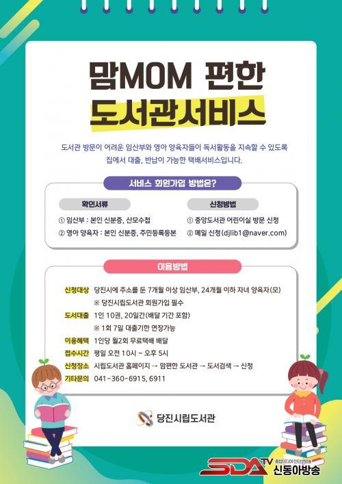 [½Åµ¿¾Æ¹æ¼Û=ÀÌÀçö ±âÀÚ] ´çÁø½Ã¸³µµ¼°üÀº µµ¼°ü ¹æ¹®ÀÌ ¾î·Á¿î ÀÓ»êºÎ¿Í ¿µÀ¯¾Æ ¾çÀ°ÀÚ¸¦ À§ÇØ ¹«·á·Î Ã¥À» ¹è´ÞÇØÁÖ´Â ¡®¸¾(MOM)ÆíÇÑ µµ¼°ü ¼ºñ½º¡¯¸¦ ¿ÃÇØºÎÅÍ ´ë»óÀÚ¸¦ È®´ëÇØ ¿î¿µÇÑ´Ù°í 19ÀÏ ¹àÇû´Ù.