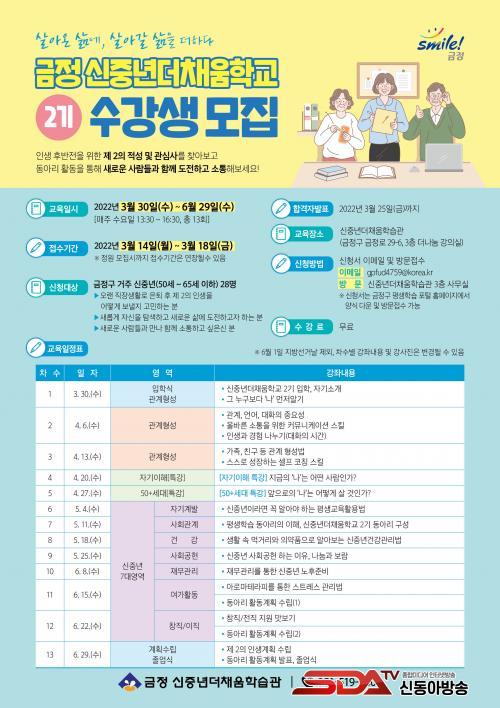 ¼ö°»ýÀº ÀÌ´Þ 14ÀϺÎÅÍ ¸ðÁýÇϸç, °ü½É ÀÖ´Â Áß³âÃþ ±ÝÁ¤±¸¹ÎÀÌ¸é ´©±¸³ª ½ÅÁß³â´õä¿òÇнÀ°ü(±ÝÁ¤±¸ ±ÝÁ¤·Î 29-6, 3Ãþ)À¸·Î ½Åû¼¸¦ Á¦ÃâÇÏ¸é µÈ´Ù. ±³À°Àº ÀÔÇÐÀ» ½ÃÀÛÀ¸·Î 3¿ù 30ÀϺÎÅÍ 6¿ù 29ÀϱîÁö ½ÅÁß³â´õä¿òÇнÀ°ü 3Ãþ¿¡¼ ¿î¿µµÈ´Ù.