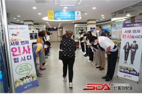 À̳¯ Çà»ç´Â ±è¼º ±º¼ö, °£ºÎ °ø¹«¿ø, ³ëµ¿Á¶ÇÕ ÀÓ¿ø, ½Å±Ô °ø¹«¿ø µî 30¿© ¸íÀÌ ¡°¾È³çÇϼ¼¿ä? ³»°¡ ¸ÕÀú ÀλçÇսô١±¶ó°í ÀλçÇϰí, Ãâ±ÙÇÏ´Â Á÷¿øµéµµ °°ÀÌ Àλ縦 ÇÏ¸ç ¹àÀº ¹Ì¼Ò·Î È´äÇÏ¸é¼ È±â¾Ö¾ÖÇÑ ºÐÀ§±â ¼Ó¿¡¼ ÁøÇàµÆ´Ù.