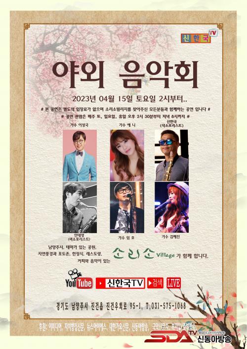 [½Åµ¿¾Æ¹æ¼Û=½Å°æ½Ä±âÀÚ] 2023³â 4¿ù 15ÀÏ Åä¿äÀÏ ¿ÀÈÄ 2½ÃºÎÅÍ ³²¾çÁֽà »ç´É¿¡ À§Ä¡ÇÑ Å׸¶°ø¿ø '¼Ò¸®¼Òºô¸®Áö'¿¡´Â ´Ù¾çÇÑ ¹ÂÁö¼ÇµéÀÌ Âü¿©ÇÏ´Â ¾ß¿Ü À½¾Çȸ°¡ 15ÀÏ Åä¿äÀÏ¿¡ ¿¸± ¿¹Á¤ÀÌ´Ù. À̹ø À½¾Çȸ¿¡´Â °¡¼ö À̼º±¹, °¡¼ö ÀÓÈ£, °¡¼ö ±èÇýÁø, °¡¼ö ¾Ö´Ï, »ö¼ÒÆù ½ÅÇѱ¹, »ö¼ÒÆù Å¿µ µî ´Ù¾çÇÑ ºÐ¾ßÀÇ ¹ÂÁö¼ÇµéÀÌ Âü¿© ¼Ò½ÄÀ» ¾Ë·È´Ù.