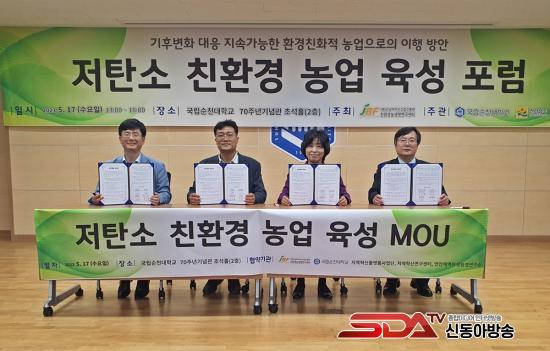 ¼øÃµ´ëÇб³ À嵿½Ä Áö¿ªÇõ½Å¿¬±¸¼¾ÅÍÀåÀº ¡°À̹ø ¡®Àúź¼Ò ģȯ°æ ³ó¾÷ À°¼º¡¯ Æ÷·³Àº ±âÈĺ¯È À§±â ½Ã´ëÀÇ ´ëÀÀÃ¥À¸·Î ģȯ°æ³ó¾÷ÀÇ ¹ßÀüÀ» À§ÇÑ Áß¿äÇÑ ÀÚ¸®¡±¶ó¸ç, ¡°¹«¾ùº¸´Ù Àü³²ÀÇ ¹Î¡¤°ü¡¤»ê¡¤ÇÐÀÌ ±âÈĺ¯È ¹× ź¼ÒÁ߸³ ´ëÀÀ °ü·Ã Çù·Â³×Æ®¿öÅ© ±¸ÃàÀ» À§ÇØ ¾÷¹«Çù¾àÀ» ü°áÇÑ °ÍÀ» °è±â·Î Àû±ØÀûÀÎ Çù·Â Ȱµ¿°ú ÇÔ²², ¼øÃµ´ëÇб³ Çлýµé¿¡°Ôµµ ´õ ¸¹Àº ±âȸ°¡ ÁÖ¾îÁö±æ ¹Ù¶õ´Ù.¡±¶ó°í ¹àÇû´Ù.
