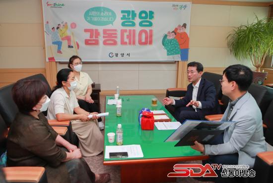 [½Åµ¿¾Æ¹æ¼Û=¹Ú±¤¿Á±âÀÚ] Á¤ÀÎÈ ±¤¾ç½ÃÀåÀº Áö³ 21ÀÏ(±Ý) ±¤¾ç½Ãû ½Ã¹ÎÁ¢°ß½Ç¿¡¼ ½Ã¹ÎµéÀÇ °íÃæ ¹× ¾Ö·Î»çÇ×, ½ÃÁ¤¹ßÀü Á¤Ã¥Á¦¾È µîÀ» µè°íÀÚ ¡®±¤¾ç °¨µ¿µ¥ÀÌ¡¯¸¦ °¡Á³´Ù.