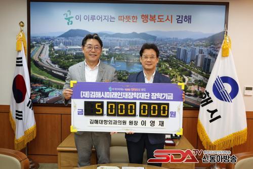[½Åµ¿¾Æ¹æ¼Û´º½º=ÃÖ¼ÛȱâÀÚ] ±èÇØ½Ã¹Ì·¡ÀÎÀçÀåÇÐÀç´Ü(ÀÌ»çÀå ÇöÁ¾¿ø)Àº ÀÌ¿µÀç(58) ±èÇØ´ëÇ׿ܰúÀÇ¿ø ¿øÀåÀÌ Áö¿ª Ãâ½Å ÀÇ´ë»ý Áö¿ø ÀåÇбâ±Ý 500¸¸¿øÀ» ±âŹÇß´Ù°í 27ÀÏ ¹àÇû´Ù.