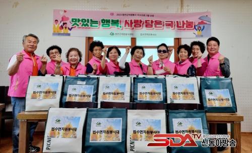 ¹ý¼ö¸éÀÚ¿øºÀ»ç´ë¿ø 15¸íÀÌ Âü¿©ÇØ ¹«´õÀ§¸¦ ÀÌ±æ ¿µ¾ç¸¸Á¡ »ï°èÅÁ 25ÀκÐÀ» Á÷Á¢ ¸¸µé¾î ±º³» Àú¼Òµæ °¡±¸ ¹× Ȧ·Î °è½Å ¾î¸£½Å¿¡°Ô ´ëÁ¢Çß´Ù. ÀÌ¿Í ÇÔ²² ÇԾȱºÀÚ¿øºÀ»ç¼¾ÅÍ¿¡¼´Â ¶ß°³ÁúºÀ»ç´Ü(ȸÀå ¿ìÁö¿ø)ÀÌ Á÷Á¢ ¸¸µç ¼ö¼¼¹Ì 50°³µµ Áö¿øÇß´Ù.