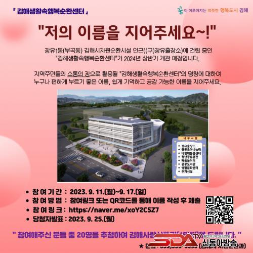 [½Åµ¿¾Æ¹æ¼Û´º½º=ÃÖ¼ÛȱâÀÚ] ±èÇØ½Ã´Â 2024³â »ó¹Ý±â °³°ü ¿¹Á¤ÀÎ ¡°±èÇØ»ýȰ¼ÓÇູ¼øÈ¯¼¾ÅÍ¡±ÀÇ À̸§À» Áþ±â À§ÇØ ½Ã¹ÎµéÀÇ Á¦¾ÈÀ» ¹Þ´Â´Ù°í ¹àÇû´Ù.