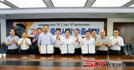 [½Åµ¿¾Æ¹æ¼Û=¹Ú±¤¿Á±âÀÚ] °íÈﱺ(±º¼ö °ø¿µ¹Î)Àº °ø¿µ¹Î ±º¼ö¸¦ ´ÜÀåÀ¸·Î ÇÑ ¡®°íÈﱺ ³ó¼ö»ê¹° Áß±¹½ÃÀå ¼öÃⰳô´Ü¡¯ÀÌ Áö³ 9¿ù 13ÀÏ Áß±¹ ÇöÁö¿¡¼ ¿þÀÌÇÏÀÌ »ó¹«±¹, »êµÕ ³ªÇÏÀÌ ±¹Á¦¹«¿ª°ú 3ÀÚ °£ Çù¾àÀ» ÅëÇØ °íÈï ±è 500¸¸ ºÒ ÀÌ»ó ¼öÃâÇÒ ¼ö ÀÖ´Â ½ÃÀåÀ» °³Ã´Çß´Ù°í ¹àÇû´Ù.