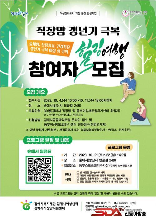 [½Åµ¿¾Æ¹æ¼Û´º½º=ÃÖ¼ÛȱâÀÚ] (Àç)±èÇØ½Ãº¹ÁöÀç´Ü ±èÇØ½Ã¿©¼º¼¾ÅÍ(Á÷À帾Áö¿ø¼¾ÅÍ)´Â ¿©¼ºÄ£Èµµ½Ã °ÅÁ¡ °ø°£ ÇÔ¼º»ç¾÷ÀÇ ÀÏȯÀ¸·Î 10. 21.(Åä)~22.(ÀÏ) 1¹Ú 2ÀÏ ¡º Á÷À帾 °»³â±â ±Øº¹ Èú¸µ¿©Çà ¡»À» ¿î¿µÇÑ´Ù.