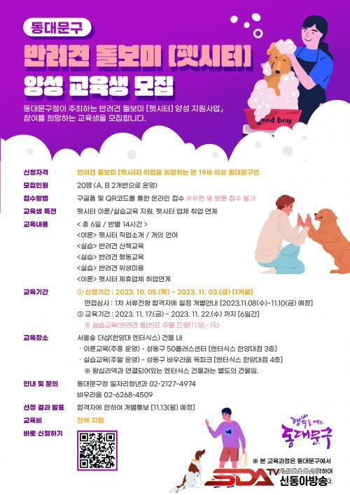 ¼ö°»ýµéÀº 11¿ù 17ÀϺÎÅÍ 22ÀϱîÁö ÃÑ 14½Ã°£ÀÇ ±³À°À» ¼ö°ÇÏ°Ô µÈ´Ù. ±³À°°úÁ¤Àº Æê½ÃÅÍÀÇ ¿ªÇÒ, ¹®Á¦Çൿ ¿øÀΰú ÇØ°á¹æ¹ý µîÀÇ À̷б³À°°ú ¹Ý·Á°ß À§»ý¹Ì¿ë ½Ç½À, ¹Ý·Á°ß »êÃ¥, Çൿ±³À° ½Ç½À µî Æê½ÃÅÍ È°µ¿À» À§ÇÑ ÇʼöÀûÀÎ ³»¿ëÀ¸·Î ÁøÇàµÈ´Ù. °úÁ¤ ¼ö·á ÈÄ¿¡´Â Æê½ÃÅͷΠȰµ¿ÇÒ ¼ö ÀÖµµ·Ï ¹Ý·Áµ¿¹° µ¹º½ ¸ÅĪ Ç÷§Æû¿¡ µî·ÏÇØ Ãë¾÷±îÁö ¿¬°èÇÒ °èȹÀÌ´Ù.