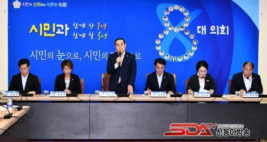 7¿ù 13ÀÏ¿¡´Â Á¦230ȸ ÀÓ½Ãȸ 1Â÷ º»È¸ÀÇ Àü, ¸¶Âù°¡Áö·Î ½ÃÀÇȸ Çö°ü¿¡¼ Àüü ÀÇ¿øÀÌ Âü¿©ÇÑ °¡¿îµ¥ ¡®¿©¼ö ºÎ¿µ¾ÆÆÄÆ® à» ¹Î¿ø ÇØ°á Ã˱¸ ¼º¸í¼¡¯¸¦ ¹ßÇ¥Çß´Ù.