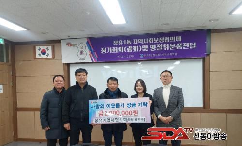 [½Åµ¿¾Æ¹æ¼Û´º½º=±èÁÖ¿¬±âÀÚ] ÀåÀ¯±â¾÷üÇùÀÇȸ(ȸÀå ±è±â¼ö)´Â Áö³ 25ÀÏ ÀåÀ¯1µ¿ÇàÁ¤º¹Áö¼¾Å͸¦ ¹æ¹®ÇÏ¿© ÀåÀ¯1µ¿¿¡ °ÅÁÖÇÏ´Â Àú¼Òµæ °¡Á¤¿¡°Ô Àü´ÞÇØ ´Þ¶ó¸ç ÀÌ¿ôµ½±â ¼º±Ý 200¸¸¿øÀ» ±âŹÇß´Ù.