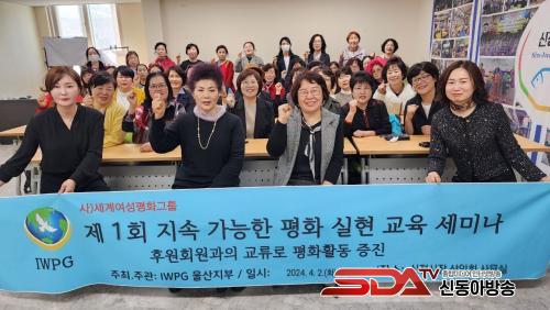 [½Åµ¿¾Æ¹æ¼Û´º½º=ÀÌÁ¶Àº±âÀÚ] ©Å¼¼°è¿©¼ºÆòÈ±×·ì ¿ï»êÁöºÎ(IWPG, ÁöºÎÀå Ã̷ֹÊ)°¡ Áö¼Ó °¡´ÉÇÑ ÆòÈ ½ÇÇö ±³À° ¼¼¹Ì³ª¸¦ 2ÀÏ ¿ÀÈÄ 2½Ã ½ÅÁ¤½ÃÀå °í°´ ½°ÅÍ¿¡¼ ȸ¿øµéÀ» ´ë»óÀ¸·Î ÁøÇàÇß´Ù.