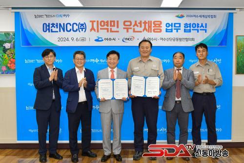 [½Åµ¿¾Æ¹æ¼Û¿©¼ö=±è±â³² ±âÀÚ] ¿©¼ö½Ã(½ÃÀå Á¤±â¸í)°¡ Áö³ 6ÀÏ ¿ÀÈÄ ½ÃÀå½Ç¿¡¼ ¿©ÃµNCC¢ß¿Í ¡®¿©¼ö»ê´Ü±â¾÷ Áö¿ª¹Î ¿ì¼±Ã¤¿ë¡¯ Çù¾àÀ» ü°áÇß´Ù.
