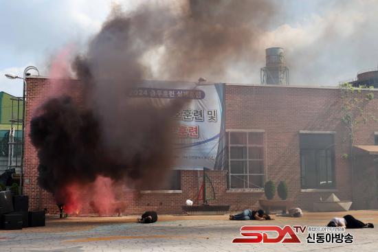 ÇöÀå¿¡¼´Â ¡ãÆøÅº ÇÇÆø¿¡ µû¸¥ Æø¹ßÀ½°ú ½ÇÁ¦ °øÆ÷źÀ» »ç¿ëÇÑ Àû°úÀÇ ±³Àü ¡ã¼Ò¹æÂ÷ÀÇ ÈÀçÁø¾Ð¿ë ¹°´ëÆ÷ ¹æ»ç ¡ã±×°øº´´ë Â÷·®°ú È»ý¹æ Á¤Âû ¹× Á¦µ¶Â÷·®, ±¸±ÞÂ÷, º¹±¸¿ë Áö°ÔÂ÷ µî Àåºñ¸¦ ´ë°Å ÅõÀÔÇÏ¿© ½ÇÁ¦»óȲÀ» ¹æºÒÄÉ ÇÏ´Â ÈÆ·ÃÀÌ ÀÌ·ïÁ³´Ù.
