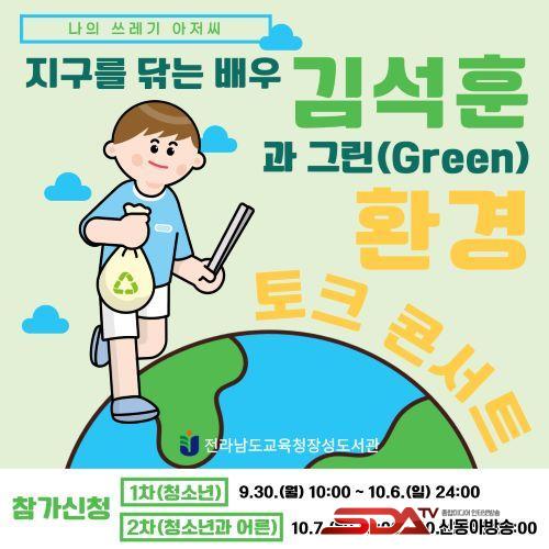 [½Åµ¿¾Æ¹æ¼Û À强±º=À̽ŵ¿±âÀÚ] Àü¶ó³²µµ±³À°Ã»À强µµ¼°ü(°üÀå ±èÇÑö)Àº ¿À´Â 10¿ù 19ÀÏ 11½ÃºÎÅÍ ±è¼®ÈÆ ¹è¿ì¸¦ ÃÊûÇÏ¿© ¡¸Áö±¸¸¦ ´Û´Â ¹è¿ì, ±è¼®Èưú ±×¸° ȯ°æ ÅäÅ© ÄܼƮ¡¹¶ó´Â ÁÖÁ¦·Î °¿¬È¸¸¦ °³ÃÖÇÑ´Ù°í ¹àÇû´Ù. À̹ø °¿¬Àº Áö¿ªÀÇ Ã»¼Ò³â°ú ¼ºÀεéÀ» ´ë»óÀ¸·Î, ÀÚ¿øÀÇ ¼øÈ¯ µî ȯ°æ¿¡ ´ëÇØ ¹è¿ì¿Í ÁֹεéÀÌ ¼ÒÅëÇÏ´Â Çü½ÄÀ¸·Î ÁøÇàµÉ ¿¹Á¤ÀÌ´Ù.